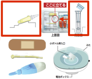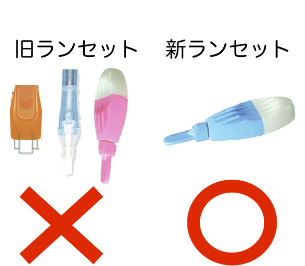 ・「オレンジ色」や「穿刺ボタン付きの青色」もしくは「ピンク/白」のランセットが入っている場合は使わないこと! ・添付もしくは送付しました「薄ブルー/白」ランセットを使うこと