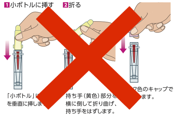 処理は中止し、液ボトルへは採血具を入れないこと。